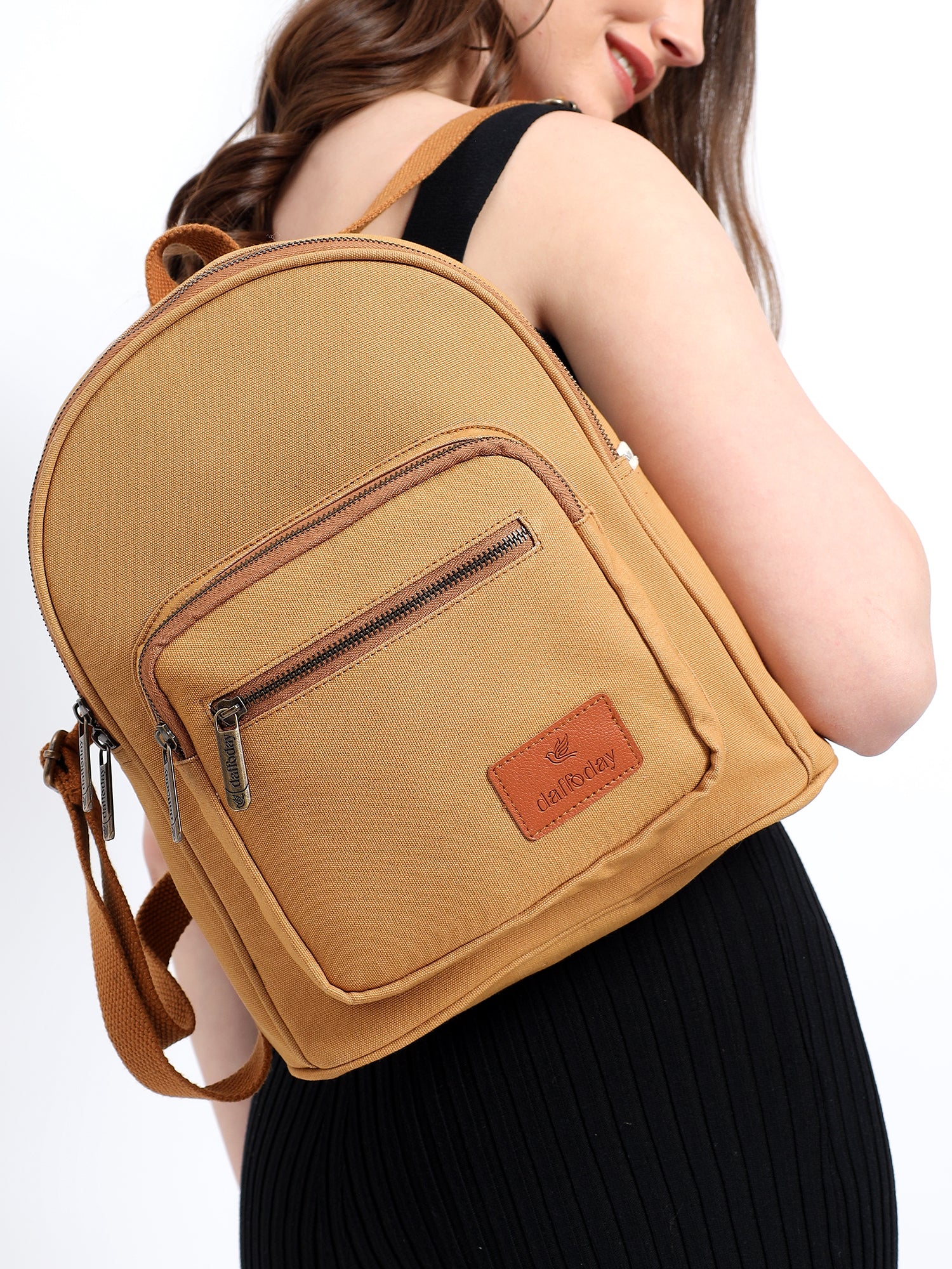 Daffoday Canvas Tan Mini Backpack For Men & Women